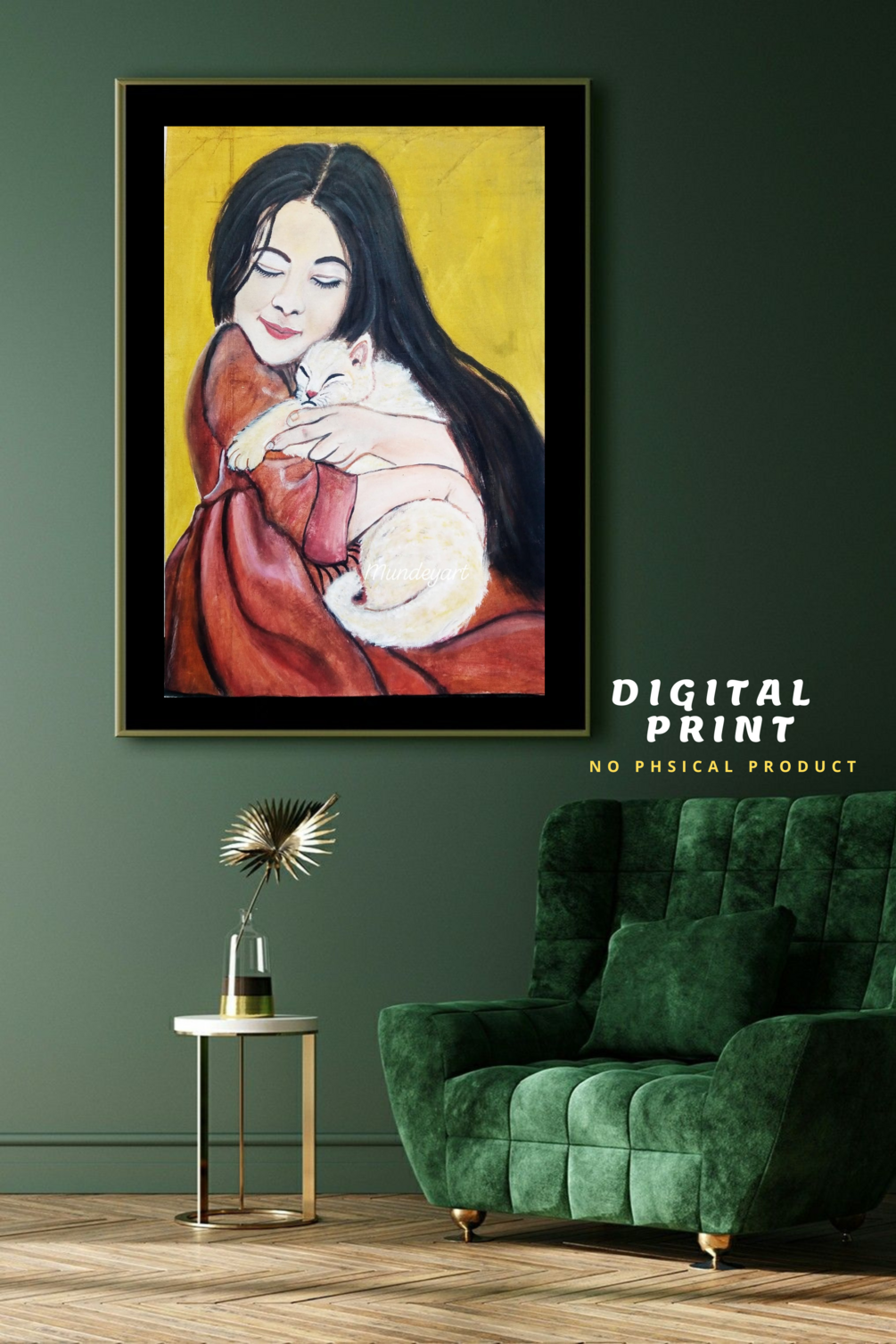 Product Highlights: 🎨 Handmade Oil Painting – Digitally scanned from an original hand-painted canvas for a truly authentic, textured look. πŸ–₯️ High Resolution (300 DPI) – Crystal clear quality, perfect for large prints up to 24"x36" without any loss in detail. 🌟 Realistic & Emotional Art – Features a warm, heart-touching moment between a girl and her cat β€” perfect for cozy home dΓ©cor. 🧾 Multiple Formats Included – You'll receive 2 JPG, 2 PNG, 3 PDF files in standard frame ratios for easy printing anywhere. πŸ–¨οΈ Ready to Print at Any Size – From A4 to 24"x36", with aspect ratios like 2:3, 3:4, 4:5, and 11:14 for versatile framing. πŸ’» Instant Download – No waiting! Get your files immediately after purchase and print from home or your favorite shop. ♻️ Reusable Forever – Print as many times as you'd like for personal use – perfect for gifts, gallery walls, or home makeovers. ❌ No Physical Product – This is a digital download. No frame or shipping involved